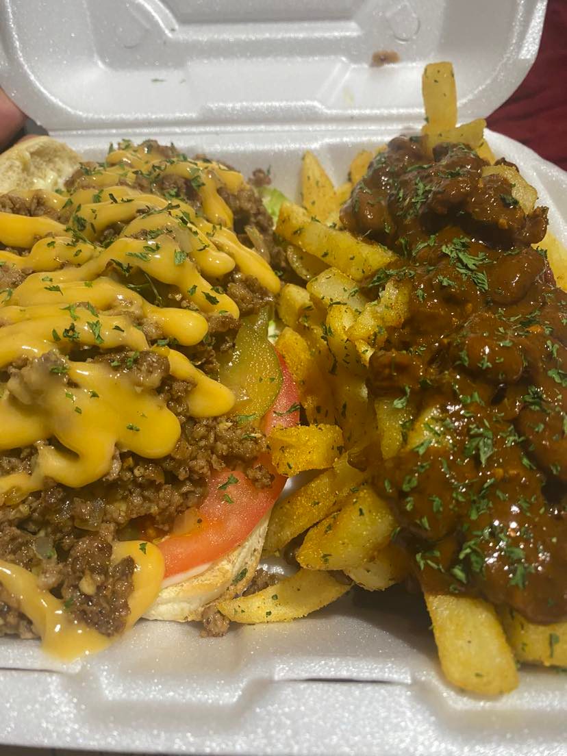 One of the most talked-about items on the menu is the Chop’D Cheese, a crowd-pleaser that’s often featured on the restaurant’s social media pages. For those looking for something richer, the oxtails with rice and peas have earned glowing reviews for their tenderness and seasoning. Knox Kitchen Koox also takes pride in its homemade sauces, which add a special touch to many dishes, elevating simple meals into something memorable. The menu blends everyday favorites with unique creations that show off the team’s creativity and passion for flavor.